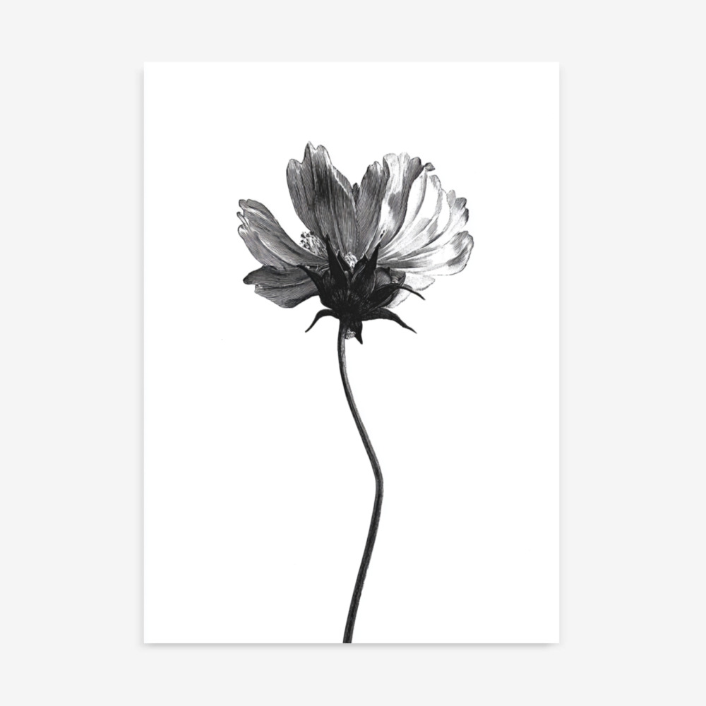 Cosmic Bloom | Black & White Botanical Cosmos Flower Art Print