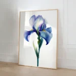 Behold the breathtaking beauty of nature captured in this exquisite Iris art print. Rendered with luminous watercolor precision, each delicate petal unfurls in a symphony of blues—from soft lavenders and ethereal periwinkles to deep, vibrant indigos. Subtle veins and highlights of warm yellow add intricate detail, making the flower appear almost alive. This piece is a celebration of vibrant color and natural elegance, designed to bring a fresh, sophisticated energy to any room.